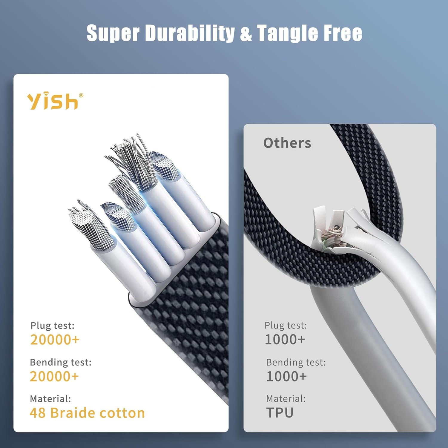 The cable is designed with premium nylon braiding and strong connectors, making it resistant to wear and tear. It is built to handle frequent use and bending over time.